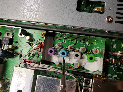 This is a Yaesu FT-900 with a VCO problem I repaired for a friend. Beautiful rigs, lots of goodies crammed in a mid-sized package. This radio intermittently stopped working on some bands.